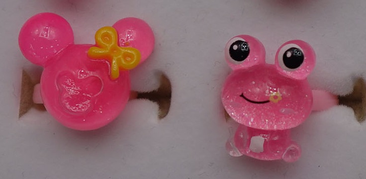 Очаровательные детские кольца из легкого пластика станут любимым аксессуаром для маленьких модниц. В наборе представлены два варианта: одно кольцо украшено розовой мышкой с бантиком, а другое – забавной лягушкой с большими глазами и милой улыбкой. Яркий розовый цвет и блестящая поверхность делают украшения заметными и веселыми, добавляя игривости в детский образ. Эти кольца легко регулируются по размеру, комфортны в носке и идеально подойдут как для повседневных игр, так и для праздничных нарядов.