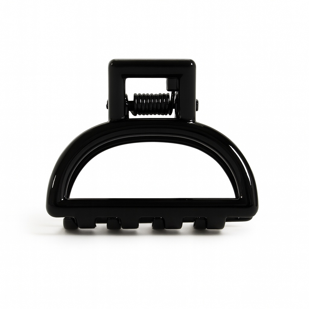 Механизм с металлической пружиной обеспечивает надёжную фиксацию, не повреждая волосы. Зажим удобно держит пряди и подходит как для повседневных укладок, так и для домашних дел. Минималистичный дизайн и чёрный цвет делают его идеальным аксессуаром на каждый день.