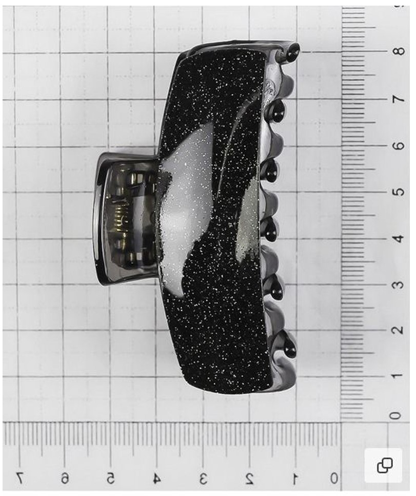 Стильный черный крабик для волос длиной 8 см — идеальное сочетание практичности и элегантности. На фото видно, что аксессуар имеет глубокий черный цвет с эффектом блесток, которые красиво переливаются на свету, придавая образу изысканности. Прочные зубцы надежно фиксируют волосы, позволяя создавать аккуратные и объемные прически на каждый день или для особых случаев. Этот крабик станет незаменимым помощником для девушек, ценящих удобство, качество и утонченный стиль.