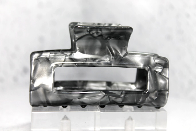 Заколка-краб прямоугольная — серый мраморный эффект, прочный пластик, глянцевый финиш