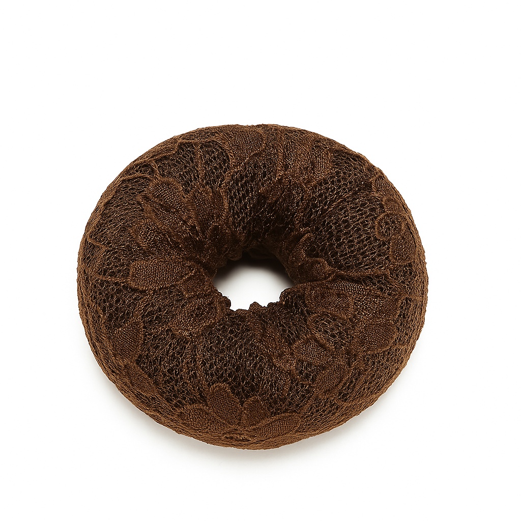 Бублик для волос с кружевным покрытием — коричневый, диаметр 2,5 см