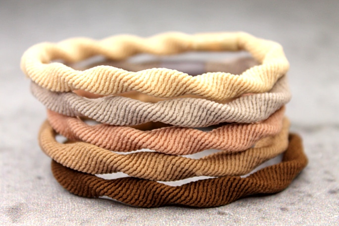 Мягкие и стильные резинки для волос в скрученном дизайне — идеальный аксессуар для повседневных и праздничных причесок. В наборе пять резинок в теплых бежево-коричневых оттенках, которые легко сочетаются с любым образом и придают ему аккуратность. Бархатная текстура делает резинки особенно приятными на ощупь и защищает волосы от заломов. Благодаря прочной основе они надежно фиксируют волосы, оставаясь при этом комфортными при носке весь день.