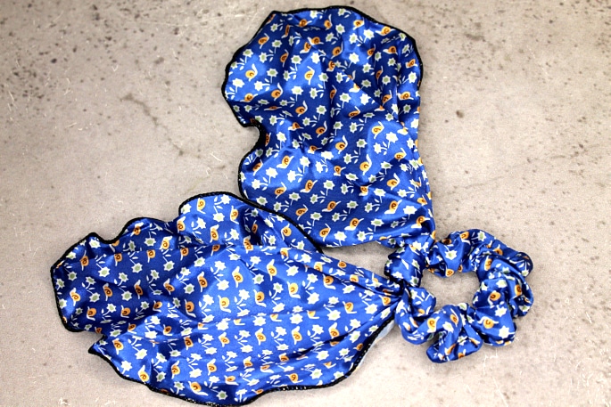 Атласная резинка для волос с длинными лентами, синяя с узором