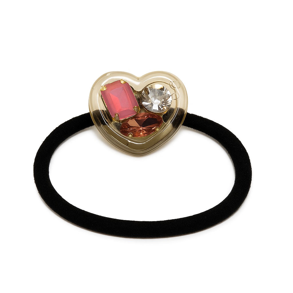Стильная резинка для волос с декоративным сердцем — это идеальное сочетание практичности и изящества. На фото видно прозрачное сердечко с тремя кристаллами: розовым, янтарным и прозрачным, которые красиво сверкают при свете и придают аксессуару утончённость. Мягкая черная основа надежно фиксирует волосы, не повреждая их и не скользя, что делает резинку удобной для повседневного ношения. Такой аксессуар легко дополнит как романтичный, так и деловой образ, добавляя лёгкий акцент гламура и женственности.