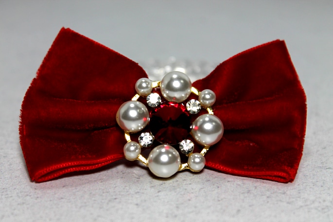 Элегантная резинка для волос с бархатным бантом в насыщенном бордовом цвете — воплощение утонченности и вкуса. Мягкий бархат придает изделию благородный блеск, а изысканный декор в виде жемчужин и прозрачных страз в золотистой оправе добавляет нотку шика. На фото видно, как плотная и аккуратная форма банта делает прическу выразительной и аккуратной, подчеркивая женственность. Такой аксессуар станет эффектным акцентом для вечернего наряда или дополнит повседневный образ с ноткой изысканной роскоши.