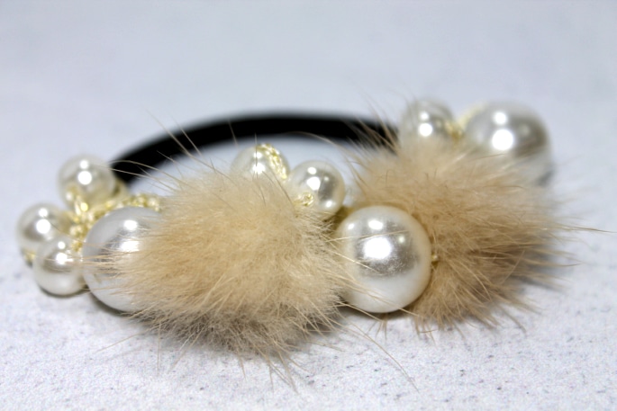 Резинка для волос с жемчужинами и пушистыми помпонами — нежность и шарм в каждом движении