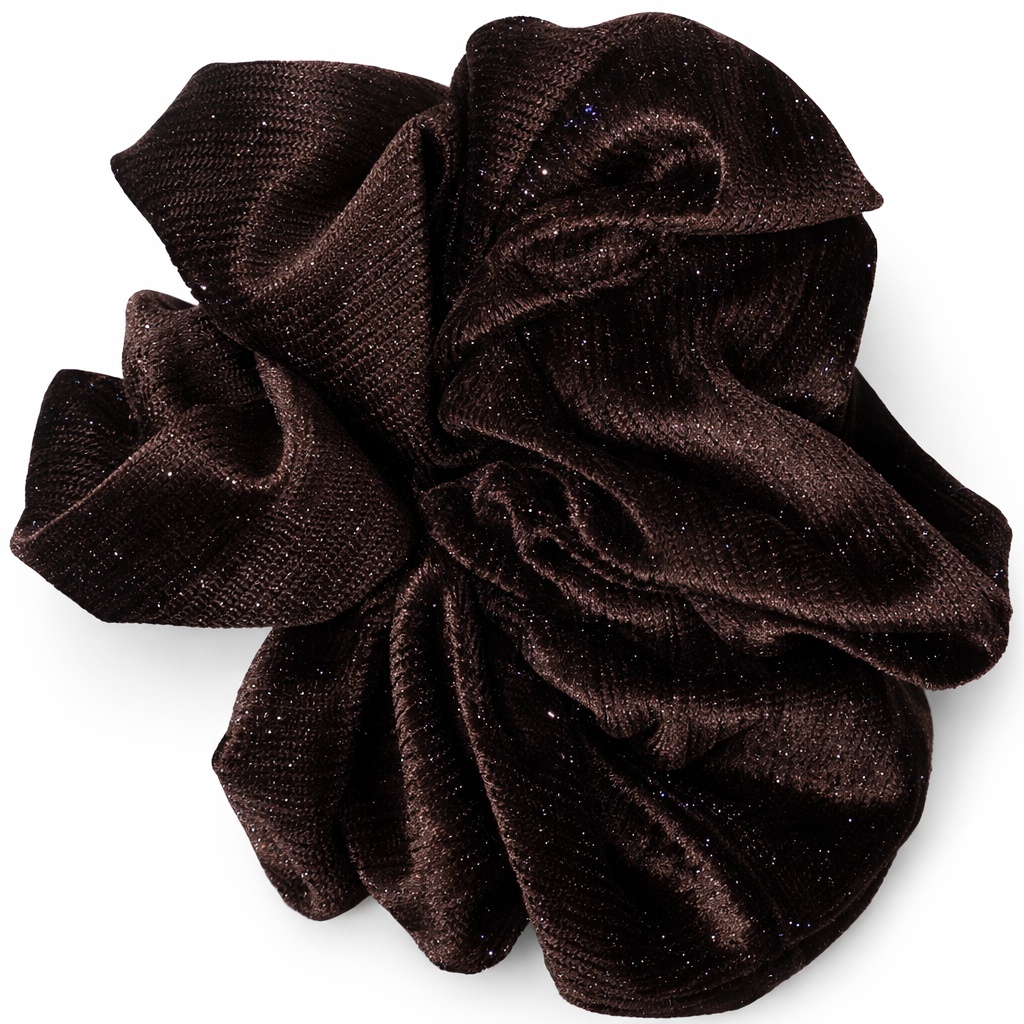 Бархатная резинка-скранчи для волос, тёмно-коричневая с лёгким блеском