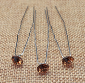 Шпильки для волос с коричневым кристаллом – 3 штуки