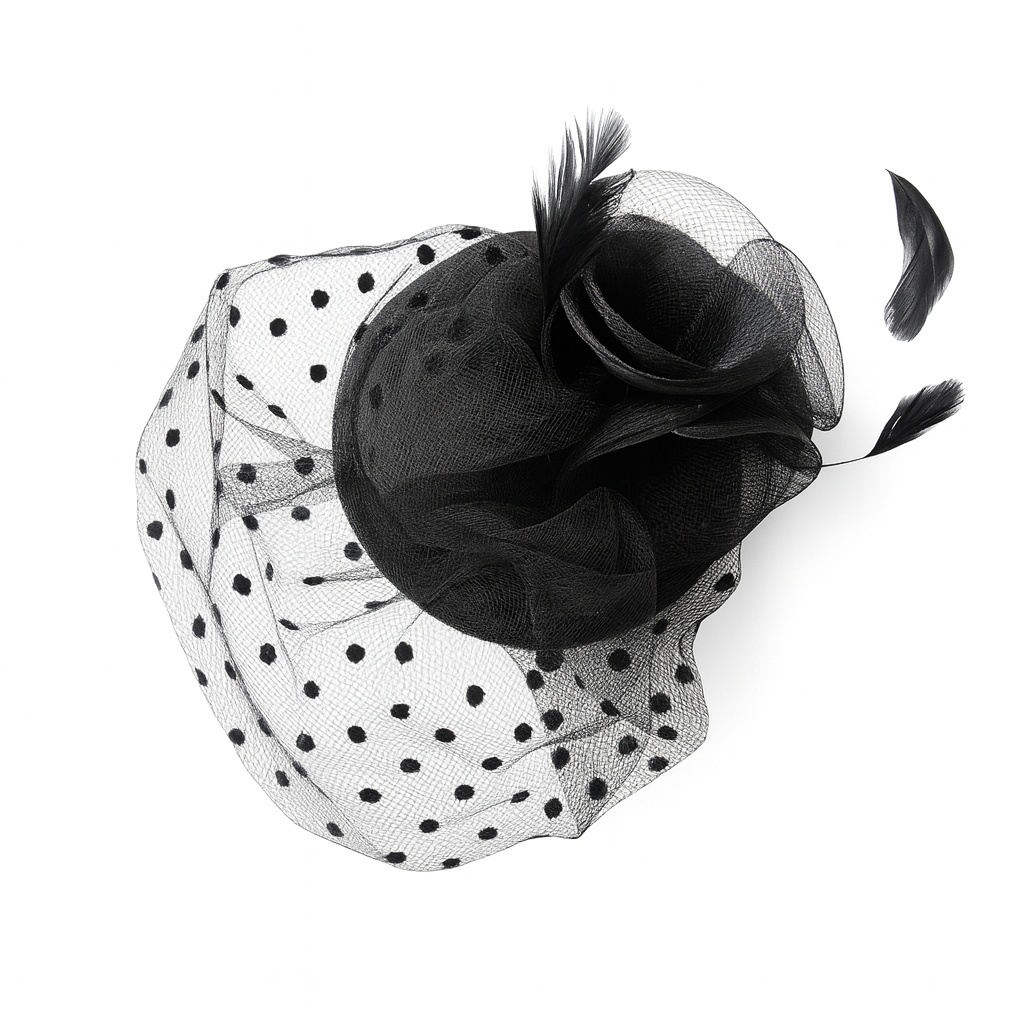 Мини-шляпка-вуалетка с перьями, черная — изящное украшение для волос