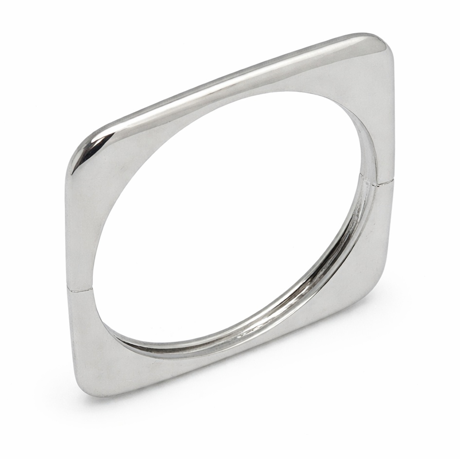 Современный браслет-манжета с лаконичной геометрической формой — идеальный выбор для поклонников минимализма и стильных акцентов. Чёткие линии и гладкая поверхность создают эффект архитектурной эстетики, а серебристый оттенок придаёт украшению универсальность и сдержанную элегантность.