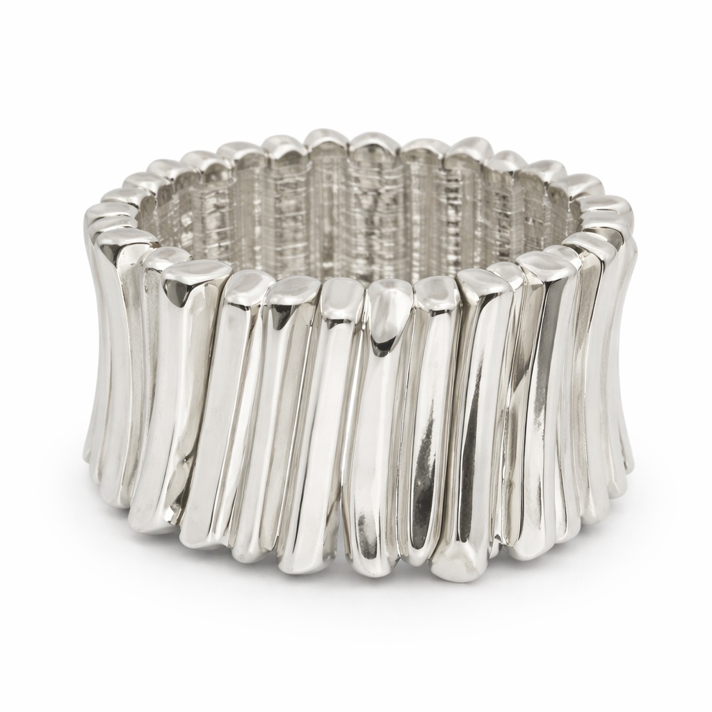 Эффектный браслет с объемной рельефной поверхностью — идеальный выбор для создания современного и запоминающегося образа. Вертикальные плавные линии создают динамичный визуальный эффект, а благородный серебристый оттенок придаёт украшению универсальность и стиль.