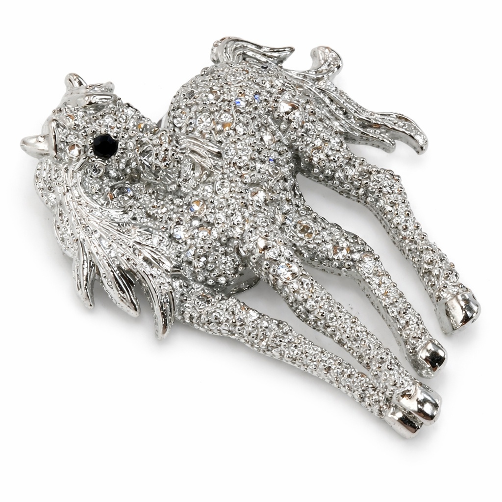 Брошь-лошадь со стразами в серебристом цвете — сияющее украшение для стильного образа