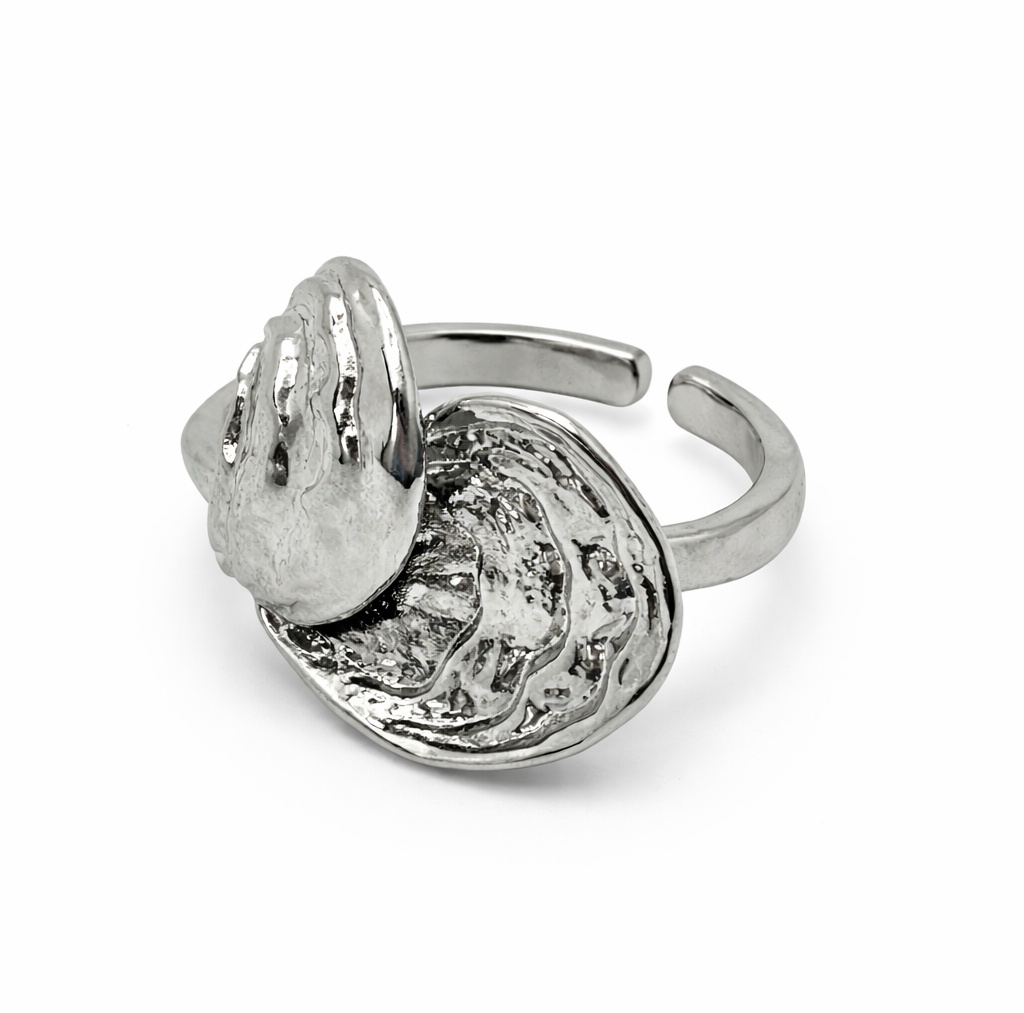 Эффектное кольцо с дизайном в виде ракушки — стильный аксессуар, вдохновлённый морской эстетикой. Фактурная поверхность и оригинальная форма создают выразительный акцент, который идеально дополнит современные образы.