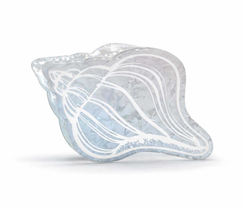 Стильный крабик для волос в форме морской ракушки — эффектный аксессуар, который добавит образу свежесть и лёгкое летнее настроение. Полупрозрачный голубой пластик с мраморной текстурой и изящным белым контурным рисунком выглядит нежно, современно и привлекательно.