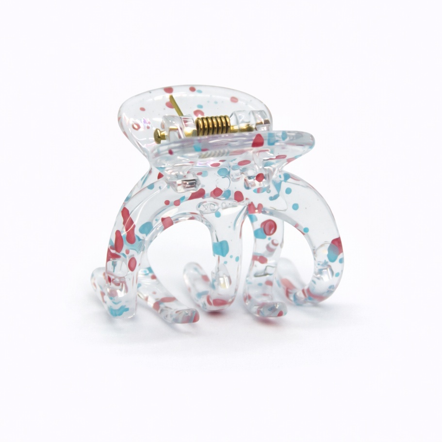 Элегантная прозрачная заколка-краб с нежным розово-голубым узором — стильный аксессуар для лёгких и аккуратных причёсок. Компактная форма идеально подходит для повседневного использования, а оригинальный принт добавляет образу свежести и индивидуальности.