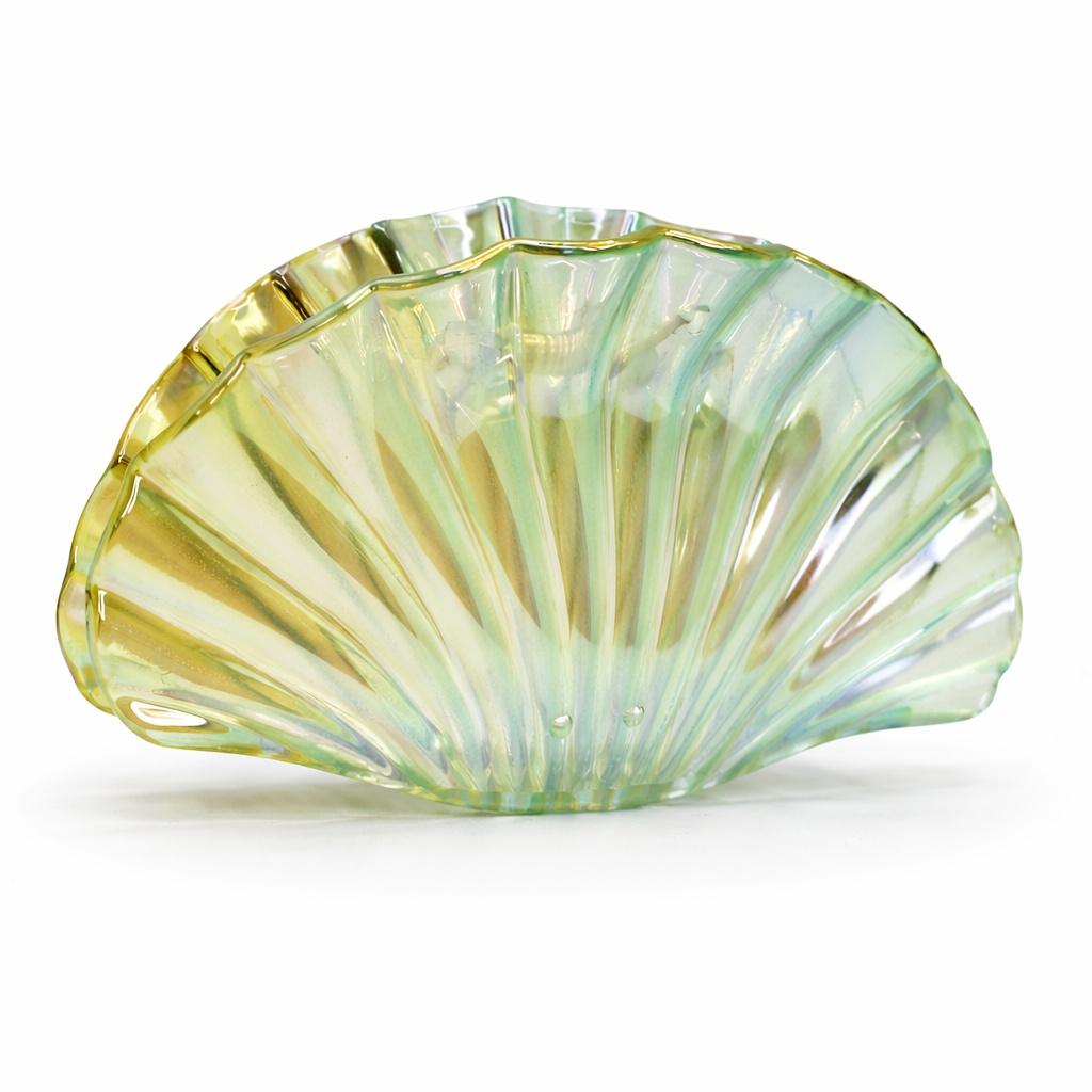 Стильная заколка-краб в форме морской ракушки с плавным переходом зелёного и жёлтого оттенков — эффектный аксессуар для создания аккуратных и трендовых причёсок. Полупрозрачная текстура красиво переливается на свету, добавляя образу свежести и лёгкости.