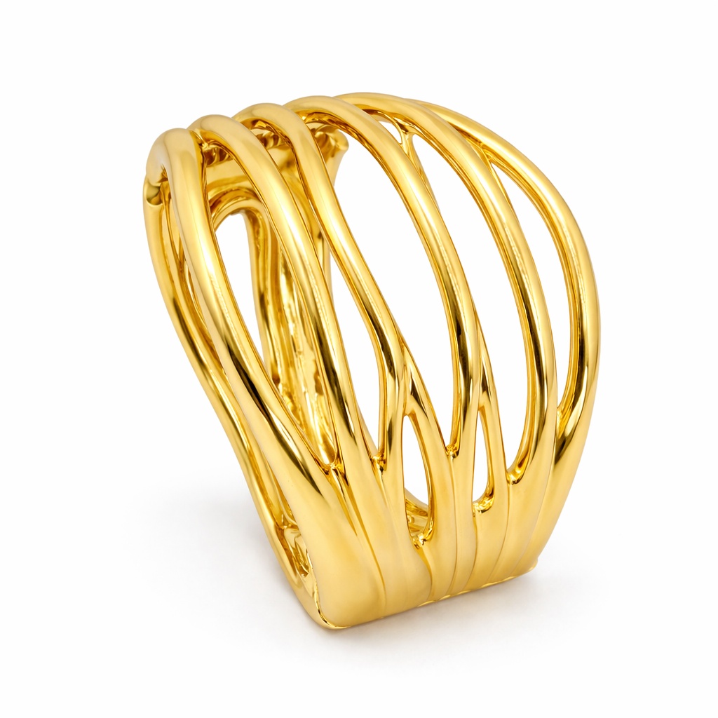Элегантный браслет с переплетающимися линиями — идеальное сочетание легкости и выразительности. Ажурная конструкция создает эффект многослойности, при этом украшение выглядит воздушно и современно. Благородный золотистый оттенок подчеркивает статус и добавляет тепла любому образу.