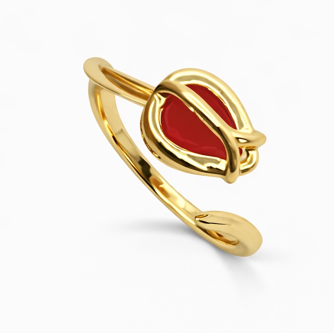 Женское кольцо с красной вставкой, золотистый металл, регулируемый размер, минималистичный дизайн