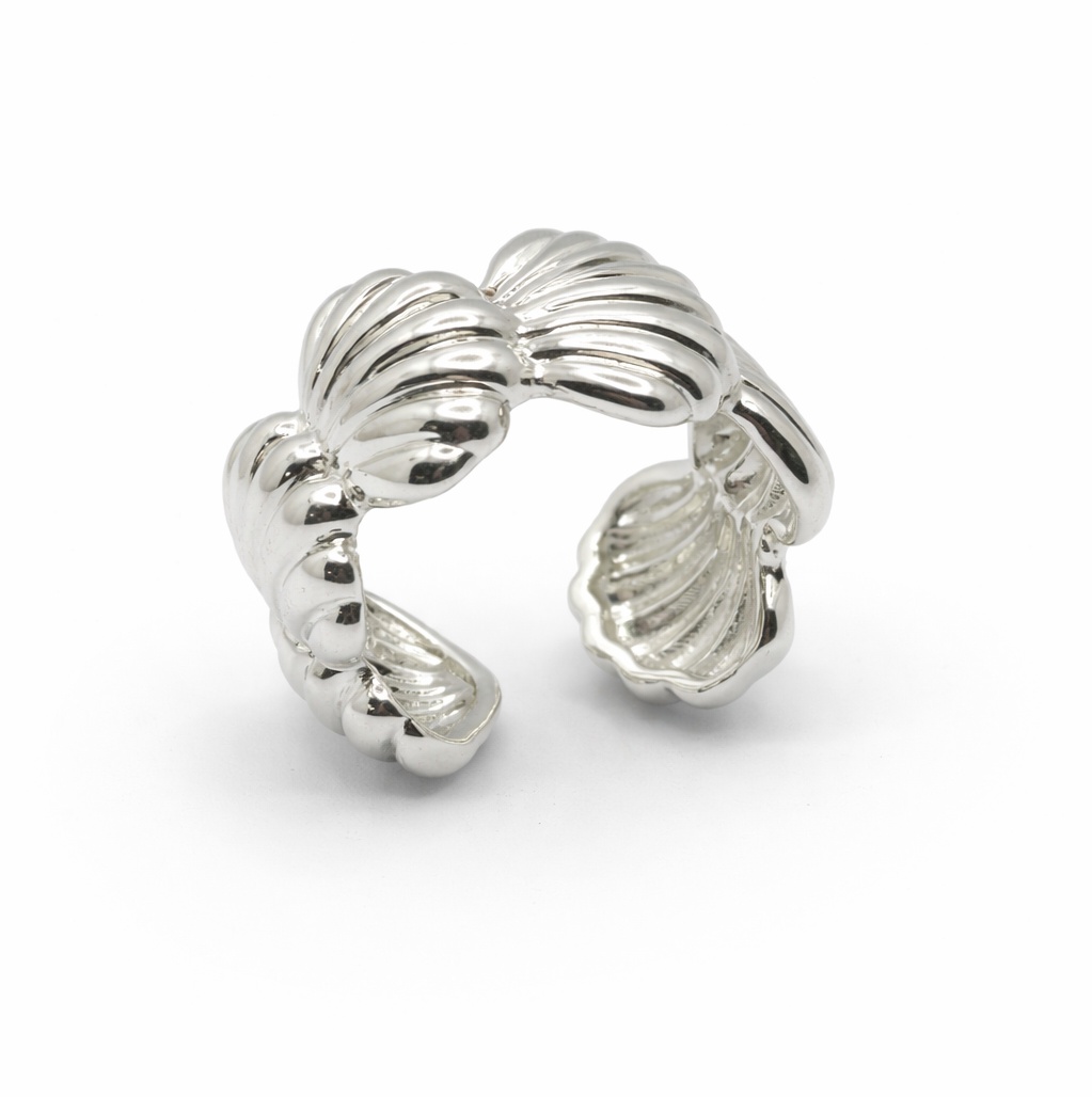 Стильное кольцо-кафф с морским характером — эффектный аксессуар для современных образов. Объёмный дизайн с рельефными элементами в виде ракушек создаёт выразительный акцент и подчёркивает индивидуальность.