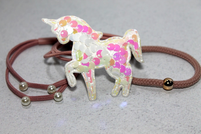 Набор резинок для волос с украшением «Единорог» и жемчужными наконечниками — бежево-карамельные, с пайетками